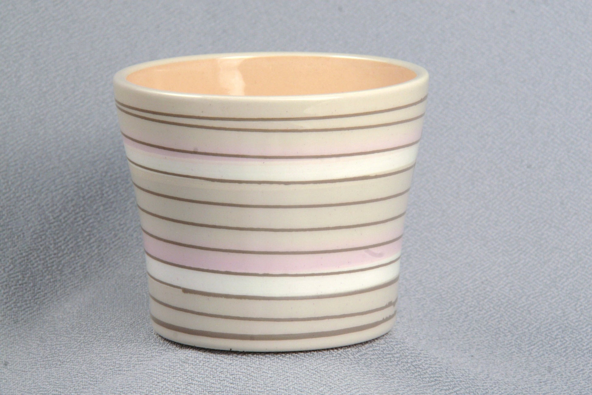 Stylish Ceramic Cache/Cover pots - Cream Striped - 11cm