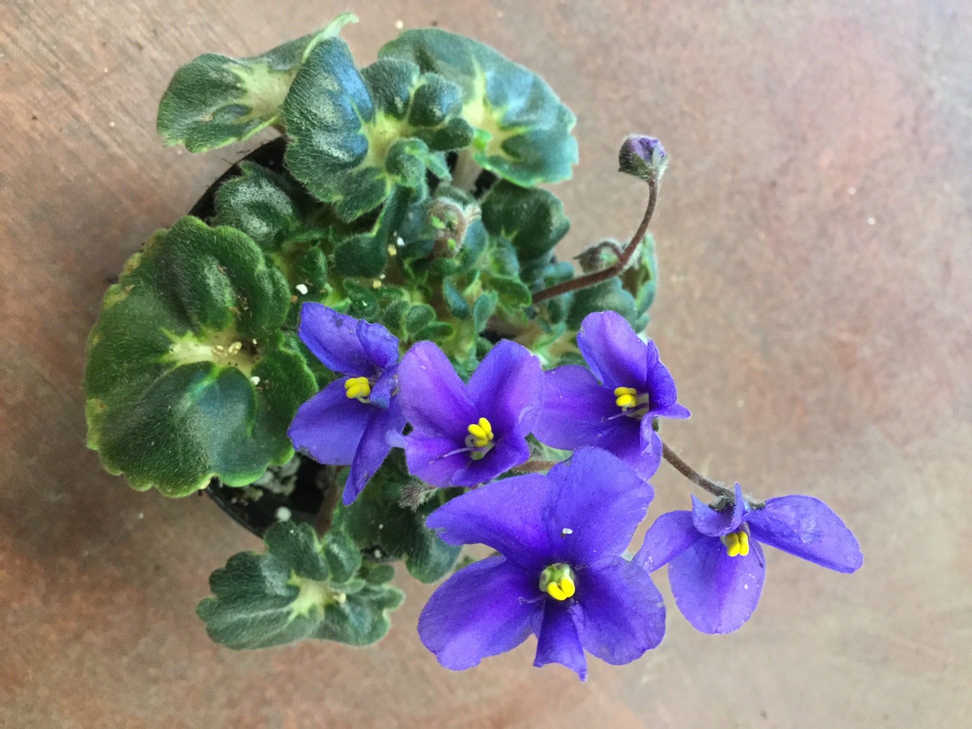 A lovely miniature variety that has girl foliage and dark blue flowers.