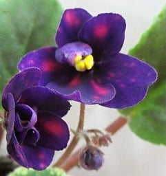 Semi-double blue flowers that enchant with some coral fantasy splashes.