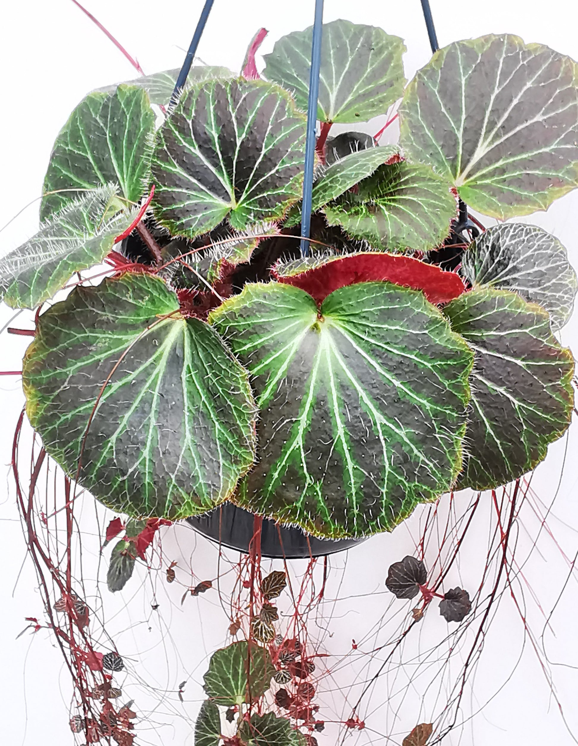 A low growing plant which can produce tall inflorescences of small white flowers. An easy to grow plant which makes an attractive feature hanging plant due to the masses of offsets/stolons which are produced on long red threads (30 - 50cm long). Available in 2 different varieties.