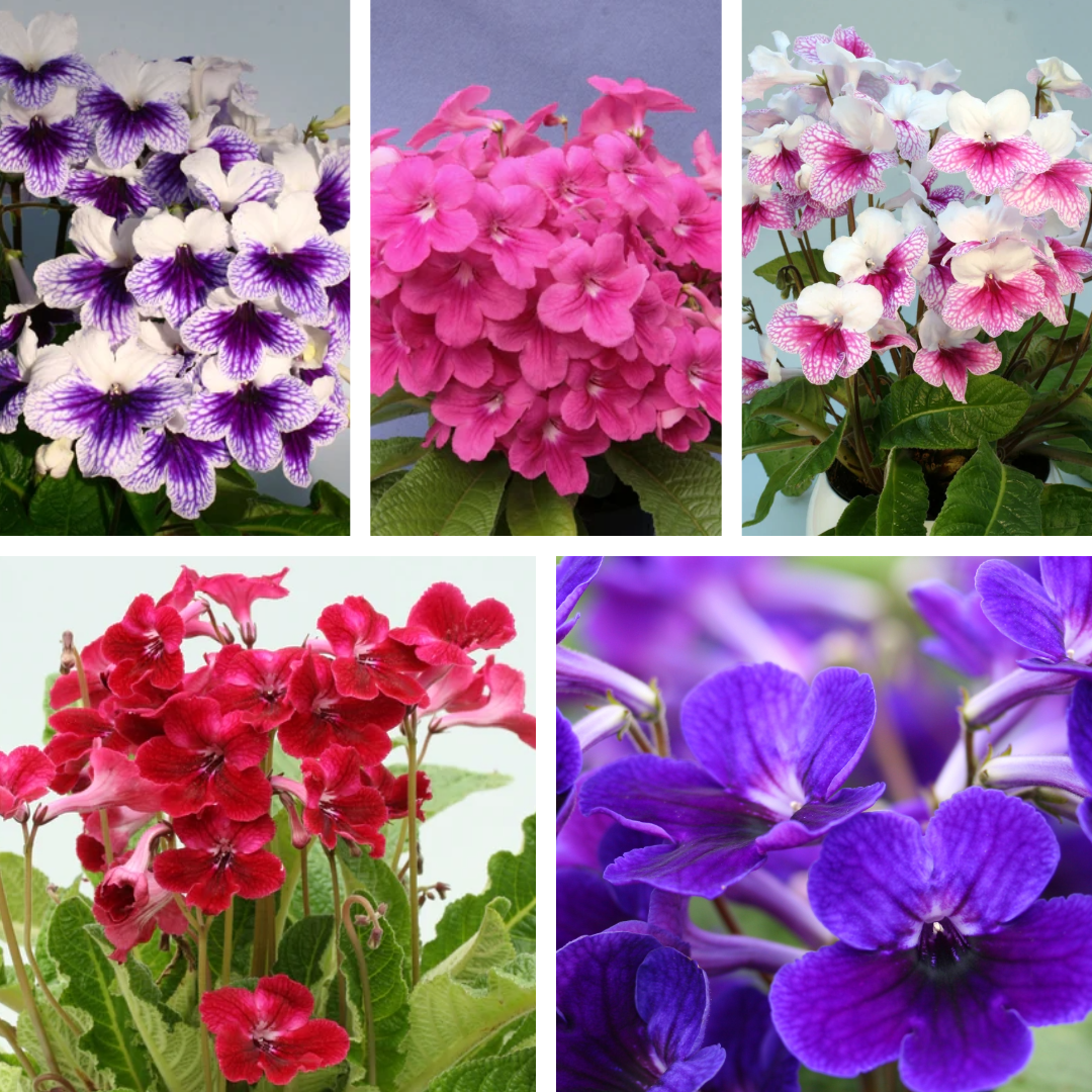 This is a collection of 5 Streptocarpus from the German breeders, Fleischle Gartenbau. All individually named. A great way to receive a range of colours at a reduced cost. Varieties:-